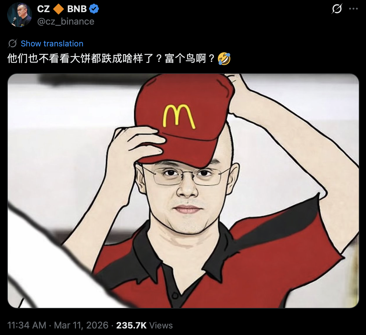 不过,CZ 本人似乎对这份荣耀兴趣缺缺,在 3 月 11 日的社群发文中直接点出问题核心: